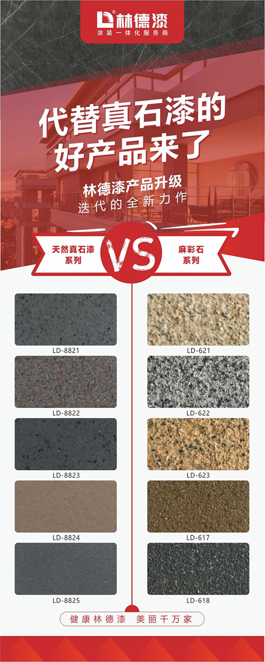 林德漆作為國內知名的“涂裝一體化服務商”,不僅提供專業的施工服務,而且在產品研發方面也持續發力、不斷創新。近期在麻彩石及巖彩石兩款新品的研究方面,林德技術團隊通過多次對比及反復實驗,最終取得成功。林德漆新產品——麻彩石運用多彩的技術,實現并超越真石漆的涂裝效果!同時,林德漆麻彩石解決了真石漆易掛灰、發花、接茬、施工難度大等問題,還克服了多彩產品生產效率低的問題,完美契合新材料、新技術的發展趨勢,更貼合國家環保要求,是真石漆的完美替代者!而巖彩石則是傳統巖片漆的升級產品,不僅在耗材方面大大降低,而且在保色性及施工性方面也遠遠超過傳統的巖片漆產品。