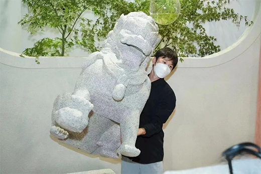 這首先體現在作為此次展覽主要組成部分的神奇空間區。該區域大量使用視錯覺的體驗,布置了很多像石頭一樣的形狀物。這些“石頭”其實是結合臻輔材別墅之星EPS構件,運用質感外墻的仿石涂料制作出頗具趣味性的裝置,如能隨手拎起的“石頭”包,僅憑一人就可輕松抱起的“石獅子”等。