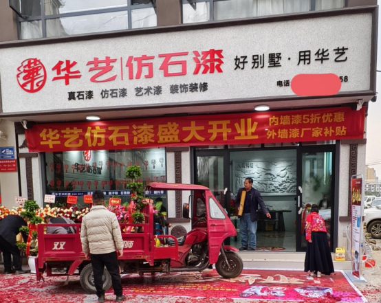 華藝仿石漆大理祥云縣店的開業(yè),是華藝涂料深耕西南市場的重要一步。從店面選址、裝修設計到開業(yè)籌備,華藝總部全程提供專業(yè)幫扶,確保店面以最佳狀態(tài)呈現(xiàn)給消費者。