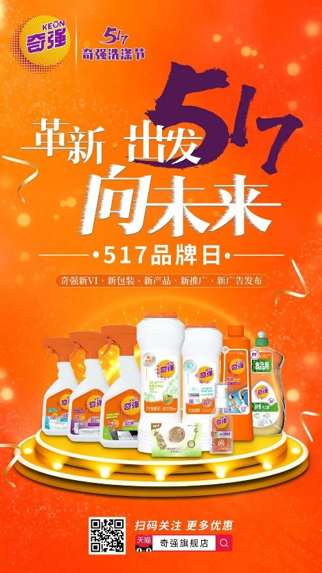 值得一提的是,本次奇強五新中除了有新產品外,還包括了基于國潮理念和科技思維的全新LOGO;更加整體性規范性的新包裝矩陣;年輕化互聯網化的新廣告思路;以及聚焦品牌力、產品力和渠道力的新推廣。可謂完全的品牌重塑,煥然一新。想了解更多詳細內容,讓我們一起期待奇強“517洗滌節”的精彩細節。