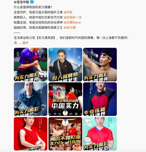寶潔在微博寫道,什么是值得相信的實力偶像?