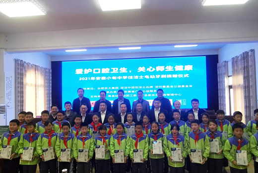 2021年10月21日,合肥百大集團攜手寶潔中國佳潔士品牌、壹基金一同走進安徽壽縣小甸鎮,開展佳潔士“愛護口腔衛生·關心師生健康”公益捐贈愛牙行動。