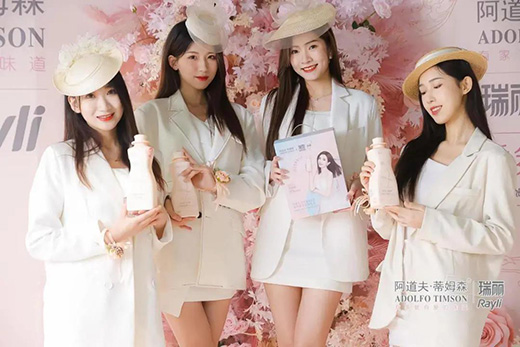 瑞麗模特展示阿道夫·蒂姆森&瑞麗洗衣凝露芯動禮盒及阿道夫·蒂姆森其他系列產(chǎn)品