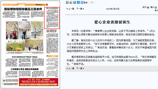 3月24日庫(kù)爾勒晚報(bào)報(bào)道《愛(ài)心企業(yè)資助貧困生》