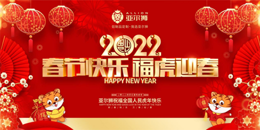 告別牛年,迎來虎年!在2022年新春即將來臨之際,亞獅金屬旗下亞爾獅品牌攜全體員工向新老客戶、廣大經銷商以及關注亞獅金屬發展的各界朋友們,致以新春的問候和美好的祝愿!