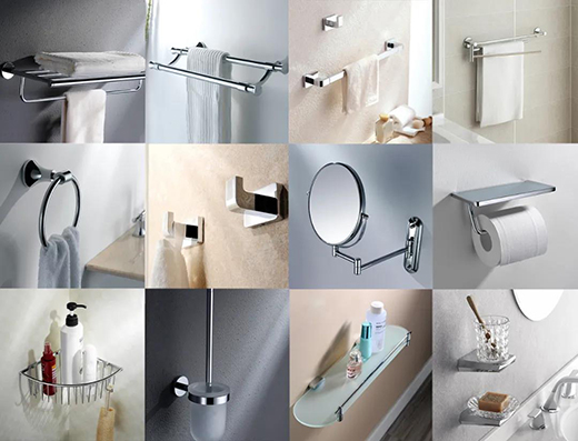 如放置換洗衣物的浴巾架,晾曬毛巾的毛巾桿,放置廁紙的廁紙架,馬桶清潔搭檔馬桶刷架,淋浴間瓶瓶罐罐的歸屬置物架。