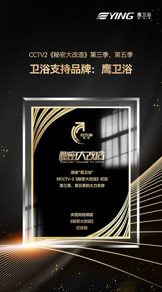 “以匠心,暖人心”是《秘密大改造》的主題,也是鷹衛浴多年來一直堅持的使命——以匠心不斷創新更多的潔凈健康的衛浴產品。