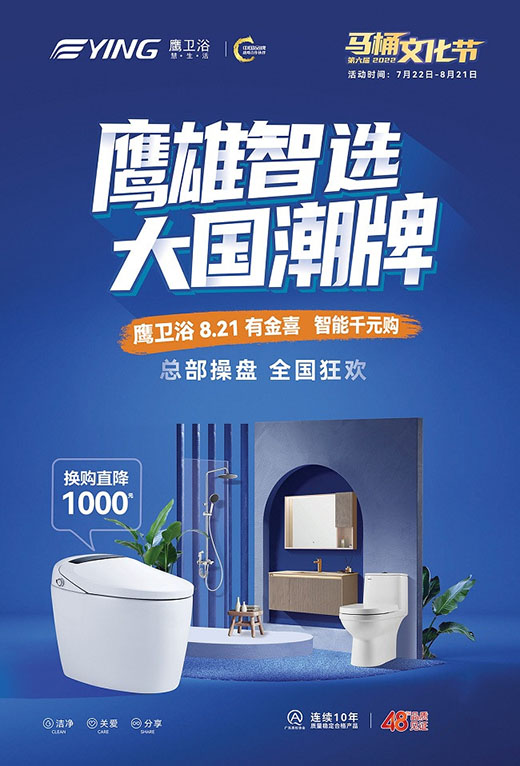 這個夏天,以感恩與關愛為初心的鷹衛浴第六屆馬桶文化節即將在全國門店拉開帷幕,這次活動,鷹衛浴攜智能、健康、新潮的衛浴產品與誠意滿滿的優惠力度回饋用戶,敬請期待!