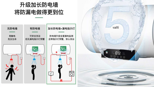 不必憂心!華帝這款電熱水器升級加長型防電墻,在人體與水之間增大電阻,即使不拔插頭,也能邊洗邊加熱,孩子獨自洗澡也可以放心。防電墻不僅升級全屋漏電系統(tǒng),還可以實時監(jiān)控電路,主動保護,且?guī)е甘緹纛A警,讓家人沐浴更放心。