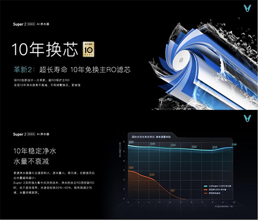 ?Super2 2000G 云米AI凈水器再次突破,10年穩定凈水,高效去農殘