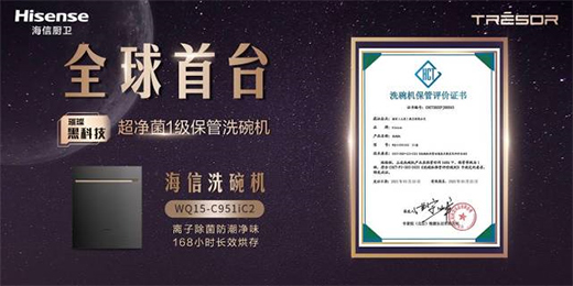 2022年3月,海信洗碗機·璀璨C951iC2獲得了中國家用電器研究院權威認證的全球首臺“超凈菌1級保管洗碗機”稱號,這不僅重新定義了行業對洗碗機保管能力的標準,也為消費者提供了選購產品的參考意義。