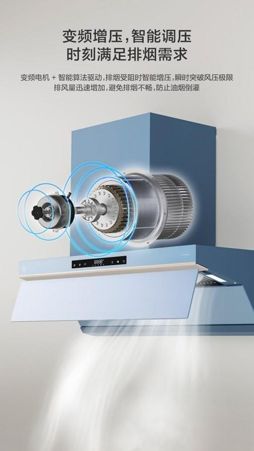 在櫻花衛廚重磅打造的“瀚海系列”新品上,我們可以看到科技力量投射出的光芒。櫻花瀚海系列吸油煙機K808采用變頻電機+智能算法驅動技術,通過改變機器的供電頻率,實現電動機運轉速度率的自動調節。例如,可以依據廚房內油煙的大小,自動調節風量。當爆炒油煙猛增時,櫻花油煙機K808會自動加大功率,瞬間產生大吸力;如果只是簡單蒸煮,它會自動降低功率,從而起到省電的作用。當做飯碰到高峰排煙不暢的情況時,櫻花油煙機K808可迅速增壓,輕松突破煙道阻力,迅速排煙。