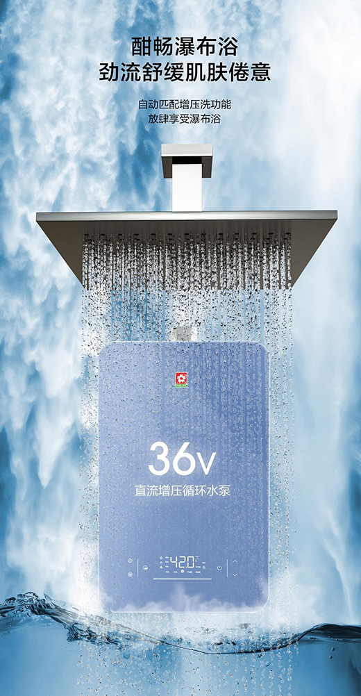 智慧科技在助力高效烹飪的同時也帶來更舒適的沐浴體驗。日常沐浴,除了清潔皮膚,還帶來消除疲勞、調節身心、美膚養顏的效果。櫻花瀚海系列熱水器Q808A采用36V直流增壓循環泵,帶來超跑級強勁動力,噴薄而出的澎湃水量能帶走身心疲憊,并且在低水壓時也能正常啟動;微電腦芯片監控以及專利雙閥四段分段燃燒技術,能適應多變的氣溫變化,讓四季皆能找到舒適的水溫。SAKURA櫻花正以科技力量為基礎,孕育智慧廚衛新生活。