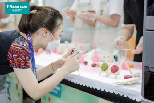 時逢午餐高峰期,海信廚衛特邀專業烘焙師傅在現場為大家制作美味。烘培師傅經過多道制作工序,將其放入海信蒸烤箱中進行烤制,隨著時間地流逝,整個大廳彌漫月餅的香甜,金黃軟糯的外皮,搭配香甜可口的餡料,傳遞濃濃中秋團圓情。