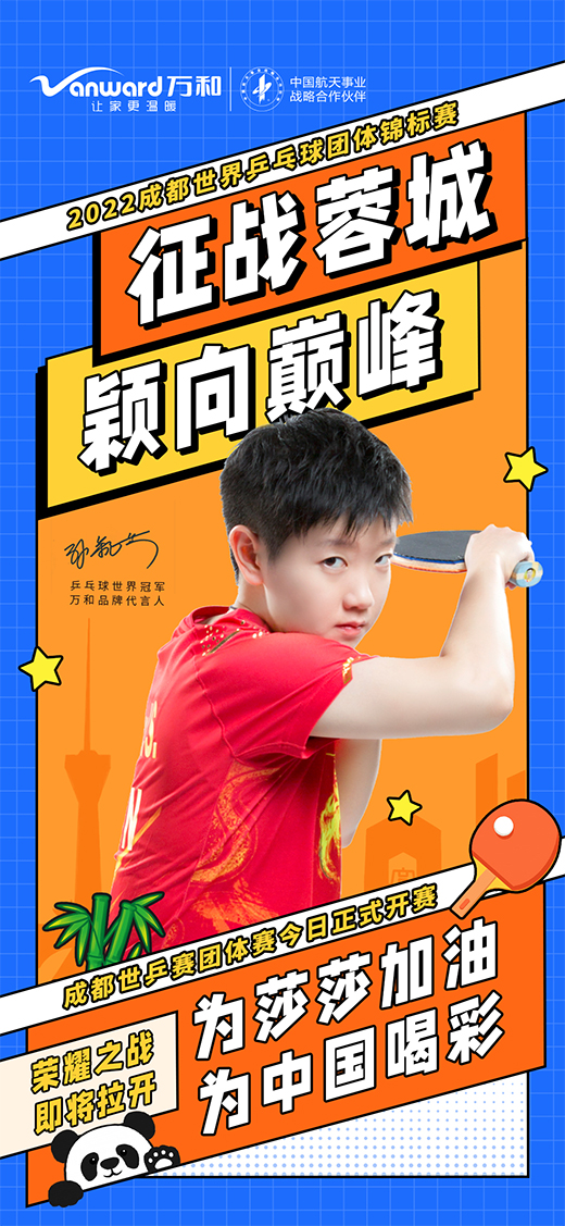孫穎莎作為目前國乒女隊主力,也是首次出征世乒賽,備受外界關注。同時作為萬和代言人,其身上溫暖向上、不斷進取的精神也與萬和品牌底蘊相契合。萬和祝福代言人孫穎莎及乒乓球國家隊在此次成都世乒賽中再創輝煌。