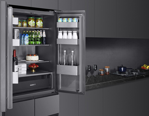 比如老板創(chuàng)造性地做了一個冷烹飪區(qū)域,可以讓中高端家庭實現(xiàn)專業(yè)化的冷烹飪;將嵌入式冰箱的厚度做到了580,將壓縮機移到頂部,做到453L的超大容量;內(nèi)部置物架換成了航空鋁合金。