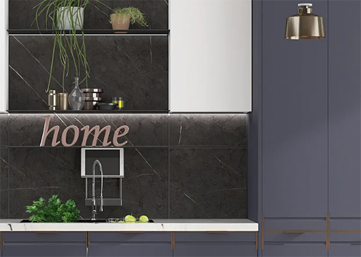 沉穩的深黑灰,搭配白色調的石紋飾面,再與充滿張力的啞藍相互碰撞,給人帶來平靜的同時,更增添了層次感。