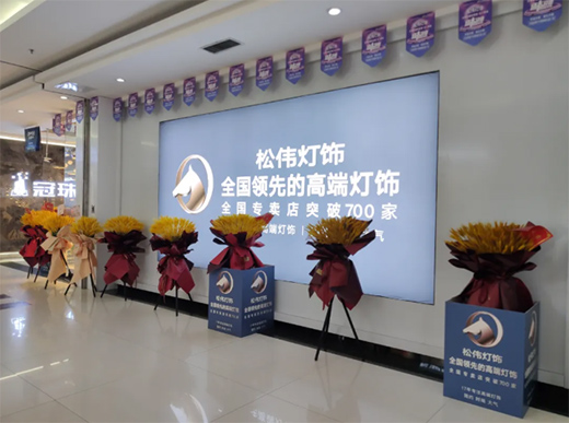 在經過一番深入的了解,梁總參觀了松偉燈飾的生產制造車間,了解松偉企業的發展歷程及未來的發展規劃后,決定于西安北大明宮市場內拿了最好的位置建設松偉燈飾品牌專賣店 。2020年在國內外疫情的不斷沖擊下,西安北大明宮松偉燈飾專賣店如期而至,盛大開業!據梁總介紹,北大明宮店開業期間松偉燈飾產品的銷量在市場中遙遙領先于其他燈飾品牌,擁有第五代形象的高端裝修及安裝上松偉燈飾新品牌logo后,專賣店形象一舉成為成為該市場內最高端的品牌形象店之一。