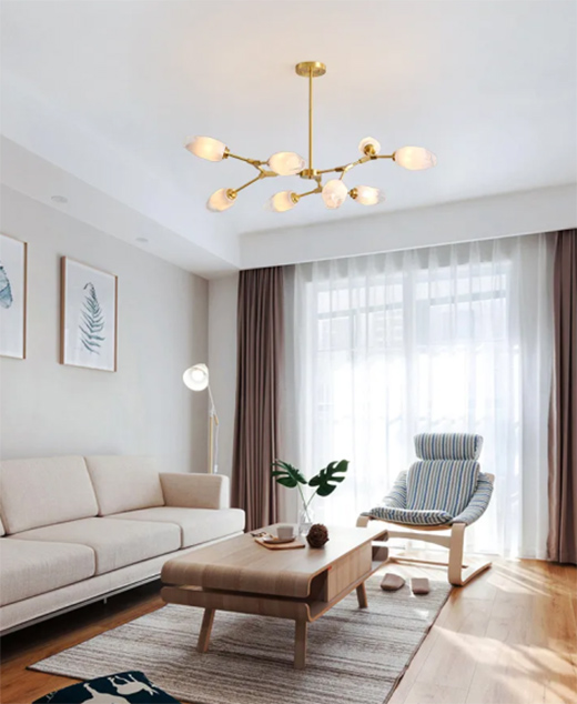 月影燈飾的這款時尚百變枝形燈,創意滿分,自由無拘,裝在家里就是個性的彰顯!整個燈的造型簡約,給人一種干凈清新的觀感。燈罩的外形看起來猶如含苞待放的花朵,精致秀美,為家里平添一抹亮麗的景色。