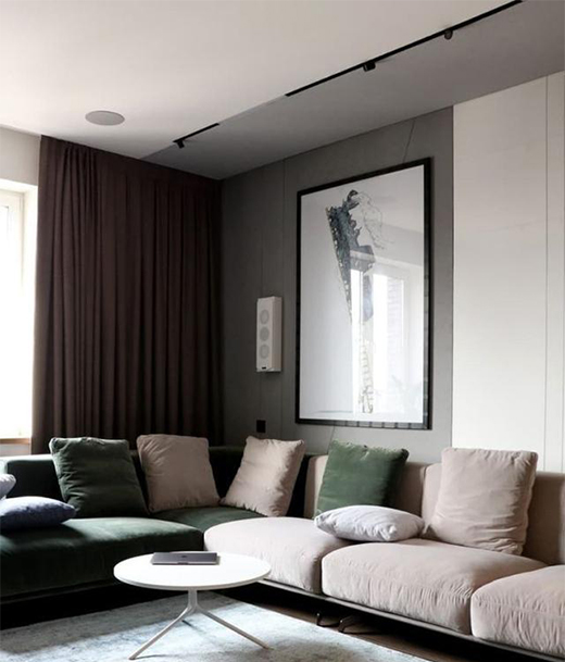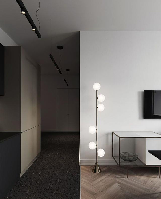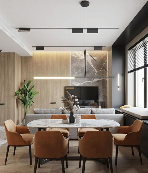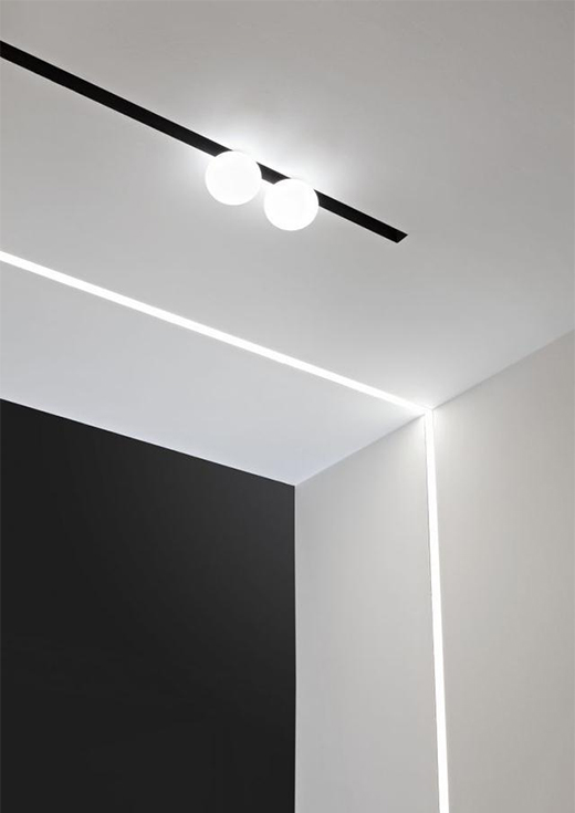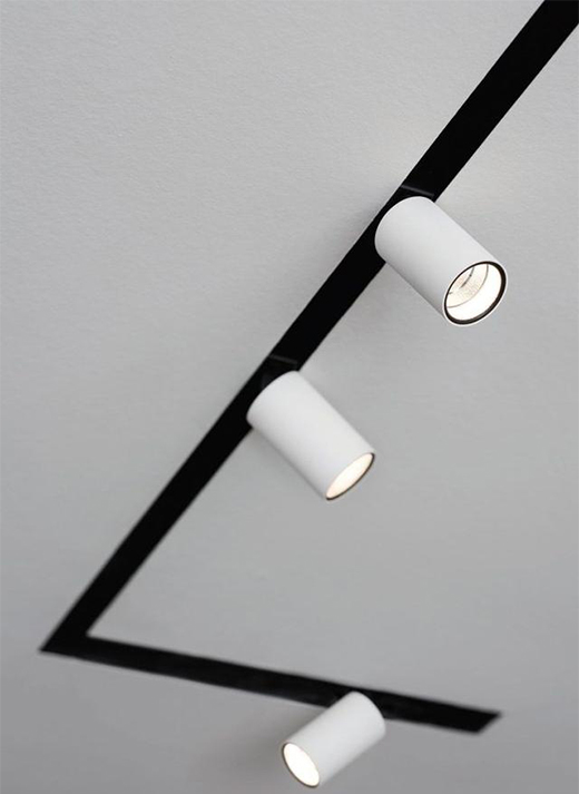 但同樣,也會讓整個空間頂部顯得空泛和單調,這時安裝磁吸軌道燈,可以通過軌道線條勾勒,裝飾整個頂部,既一定程度上符合了極簡的要求,又起到了畫龍點睛的裝飾作用。