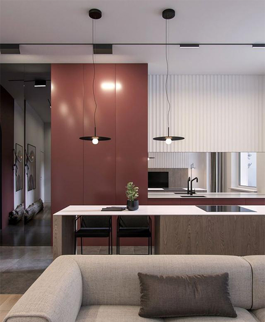 這種安裝方式相對來說會比較繁瑣,但呈現出來的效果卻也是較為貼合空間頂部,使頂部的燈光軌道能更加簡潔具有質感。