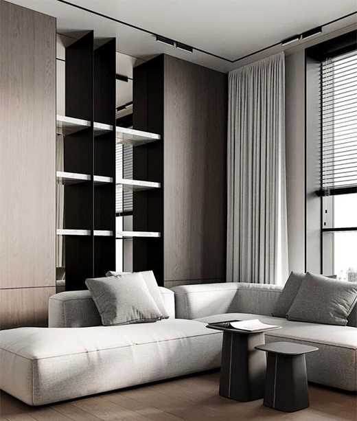 空間頂部采用無主燈設計時,會呈現一種留白的狀態,擴大空間在視覺上的效果。