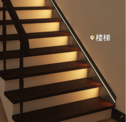 同時,室內墻轉彎,高差變化,易于滑倒等處應保證一定的光照,可以將傳統踢腳線替換成可發光的踢腳線,引導老人正確認知路線。