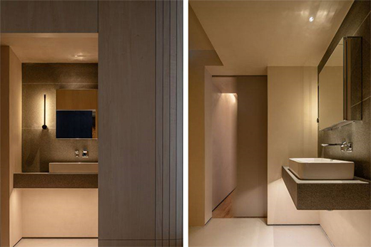 比如衛生間洗漱臺上的燈光,因為有鏡子的存在,所以這一塊一般是做重點照明的。