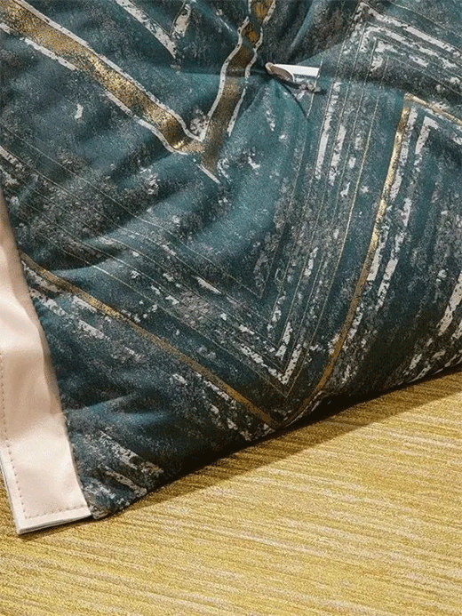 從《千里江山圖》中提取靈感,左右家居聯(lián)合故宮宮廷文化,運(yùn)用仿真絲刺繡技藝和色織工藝將《千里江山圖》中的山巒、海天景致真實(shí)、生動的展現(xiàn)出來,將傳統(tǒng)文化融于現(xiàn)代生活方式,推出了聯(lián)名款周邊產(chǎn)品,共同打造宮里的世界-家居生活空間。