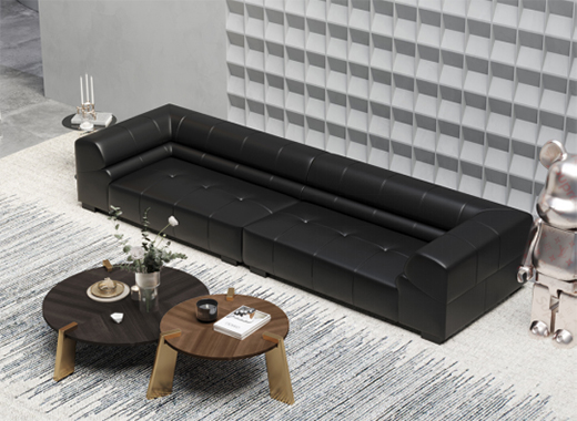 洛品有家此款黑色皮革沙發,用最簡單的設計詮釋不簡單的家居美學。長沙發的整體造型采用一字型,沙發腳隱藏于主體之間,營造出一種輕微的懸浮感,不僅給視覺“減負”,更提供了包容性極強的空間搭配性。這就是意式簡奢的魅力,看似普通隨性,但其實都經過了精心考量,每一點都是恰到好處。