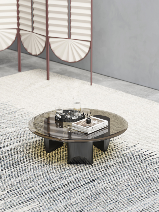 玻璃材質的茶幾具有明澈、清新的透明質感,經過光影的空透,富于立體效果,能夠讓空間變大。