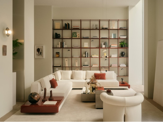 “家即本我(my home is ME)”的理念不僅局限于展臺,還延伸至米蘭的Meridiani 專營店。專營店位于Manzoni大街 38 號一座宏偉的 20 世紀早期宮殿內。在這里,品牌2025 年廣告宣發活動中的標志性單品會在入口處迎接賓客,邀請他們探索全新的布局,了解最新的產品。