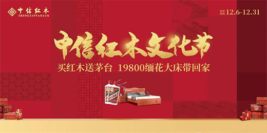 中信紅木文化節(jié)期間,以“買紅木送茅臺(tái)”回饋全國(guó)紅木消費(fèi)者,更將“19800緬花大床”的鉅惠帶給每一個(gè)中信紅木的忠實(shí)粉絲,以中信實(shí)力與中信誠(chéng)意引爆了終端紅木市場(chǎng),點(diǎn)燃了國(guó)人內(nèi)心深處對(duì)紅木的向往。這不止是一場(chǎng)終端聯(lián)動(dòng)活動(dòng),更引領(lǐng)了一場(chǎng)屬于“中信紅木”的品牌文化風(fēng)潮!