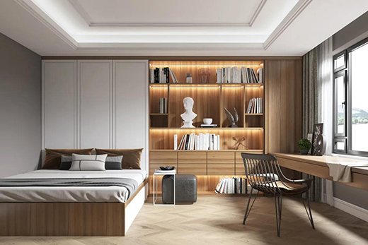生活多浮躁,家居則需要多一些沉穩(wěn)、溫潤(rùn)柔和,棕色系板材是不錯(cuò)的選擇,通過與白色搭配,顏色相輝映讓空間層次分明,源于大地色系的棕色本身自帶沉靜內(nèi)斂的特點(diǎn),傳承著自然的包容性,也會(huì)讓心更放松寬廣。