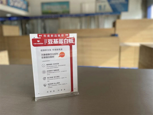 據悉,顧客對第三代豆基蛋白板材的熱情高漲,搶購火熱,凡是進店咨詢的顧客無一例外都會咨詢豆基蛋白板材的情況,并且紛紛表示期待它的出色表現。