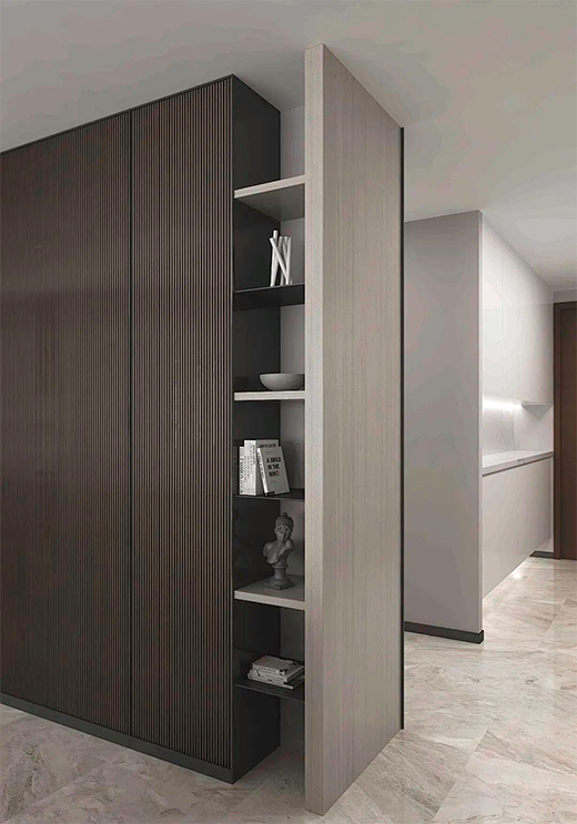 工藝上,采用歐洲環保水性油墨Arcolor,全自動光感對色系統,完美還原設計,同步對紋壓貼工藝及一板到底的飾面技術,也讓板材紋理更加細膩清晰,觸感更加真實,整體讓空間更有范。