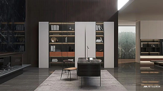 客廳式書房呈現(xiàn)出開放式的輕奢
