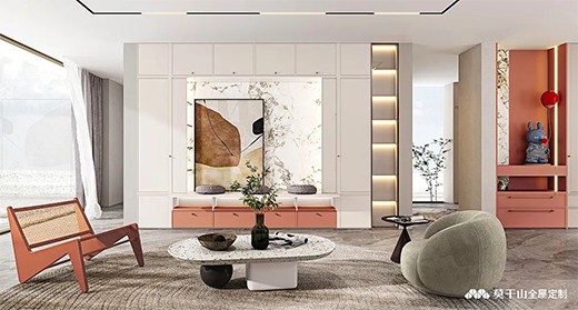 空間搭配橙色家居單品,又為整體注入活力與生機(jī),營造出獨(dú)具有中式意趣的的萬圣氛圍。