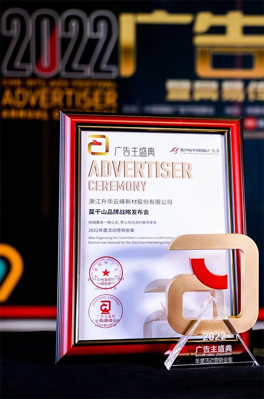 12月21日,在廈門國際會展中心隆重舉行的第29屆中國國際廣告節2022廣告主盛典頒獎典禮上,云峰莫干山憑借《莫干山品牌戰略發布會》一案榮獲“2022年度活動營銷金案”獎。