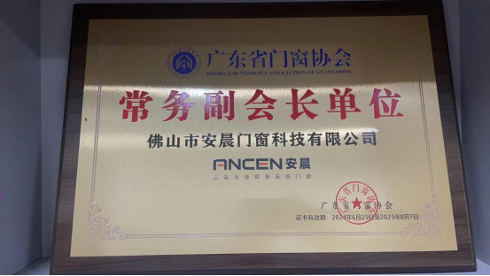 熱烈祝賀安晨門窗當選廣東省門窗協會常務副會長單位