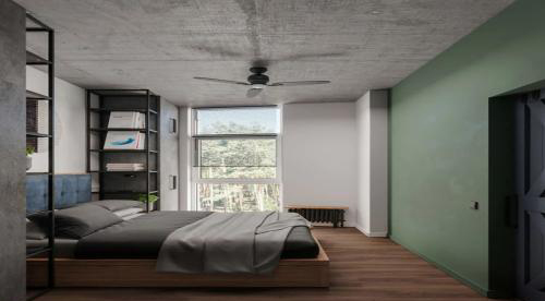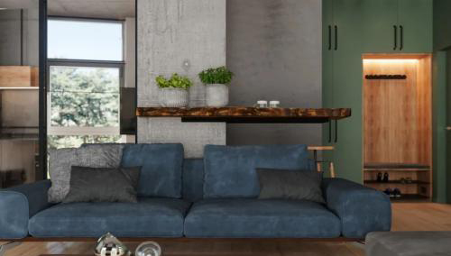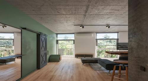 微水泥的水泥灰與綠色相融入,當(dāng)沉靜對視悅動(dòng),當(dāng)高雅對接平和,活力的綠色瞬間抹除高級灰?guī)淼木嚯x感,令整個(gè)空間充滿自然活力與靈動(dòng)舒適感。