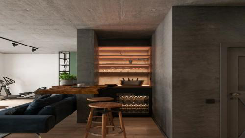 美國MM藝術(shù)涂料打造微水泥灰天花和墻壁,在一張一弛有力配合中展現(xiàn)著優(yōu)雅高端的時(shí)尚品位。打破空間的單調(diào)感,為空間注入靈動(dòng)意趣與活力。無論是風(fēng)格、材質(zhì)、顏色、圖案還是比例,豐富的元素讓空間有著標(biāo)志性的個(gè)性氣質(zhì),同時(shí)又富有當(dāng)代優(yōu)質(zhì)生活的印記。