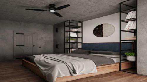 水泥灰打破灰色的單調(diào),豐富空間層次,自然簡約與質(zhì)樸仿佛沉淀在時(shí)光通道,在質(zhì)樸自然的私人空間里靜靜享受悠閑時(shí)光。呈現(xiàn)出一個(gè)時(shí)尚且復(fù)古的效果。