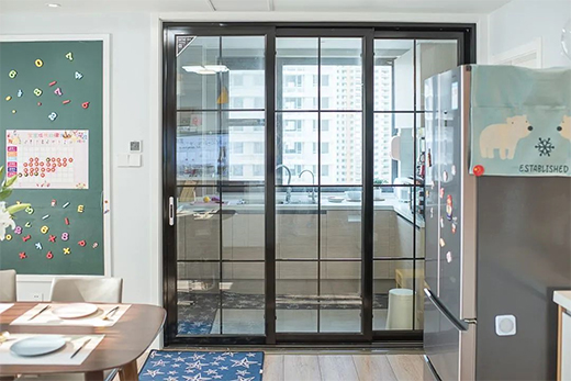 廚房擁有良好采光,采用玻璃門隔斷空間,同時引入室外光線,增加室內(nèi)通透感。黑框方格玻璃簡約高級,穩(wěn)重大氣很是不錯。