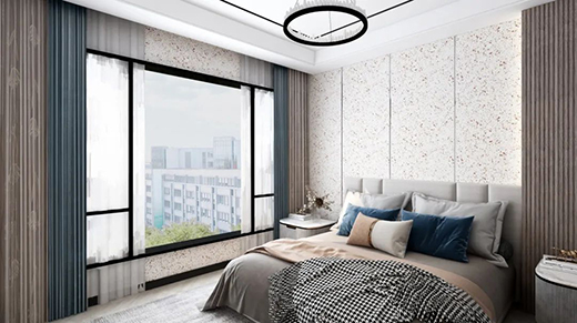 臥室是家里最讓人放松的地方。彩片貝殼般的光澤,讓您的墻面擁有彩虹般的光彩,使家居空間擁有璀璨矚目的藝術效果。