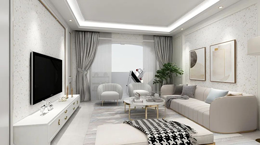 軟裝的線條增強了空間的層次感,配搭藝術涂料貝殼彩片系列,成就空間之美。