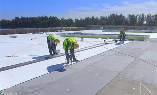 同時,結(jié)合項目特性、應(yīng)用場景、標(biāo)準(zhǔn)要求,東方雨虹在項目屋面系統(tǒng)采用TPO防水卷材機械固定工法進行標(biāo)準(zhǔn)化施工,從而進一步確保廠房內(nèi)的現(xiàn)代化生產(chǎn)線無滲漏之憂。