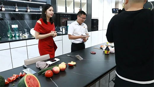 云逛王者總部展廳環節為大家做了產品介紹和深度解析,如曜影·煥系列、曜影·嫚系列、曜影·奕系列、雅巖系列、天境系列、王者巖板系列這些有顏有質的產品,從規格、顏色、風格、質感、實用性和空間應用等方面闡述了產品優勢,讓大家感受到了王者質美產品的魅力。