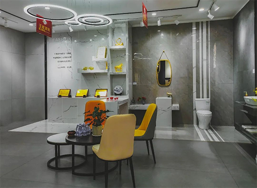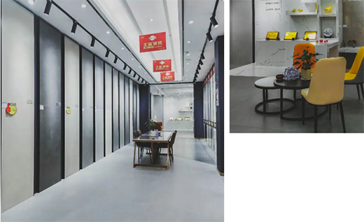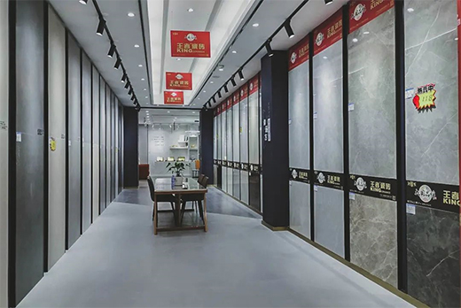 墊江王者地處建材市場的核心地段,因地制宜、定位需求,精準發力,以花色多樣、應用廣泛的900x1800mm、750x1500mm、600x1200mm大規格產品作為拳頭產品,打開銷售通路。輔以800x800mm產品配套銷售,打造全、優、精的品牌形象,快速、高效地搶占市場,贏得先機,從而在競爭激烈的市場環境中脫穎而出!