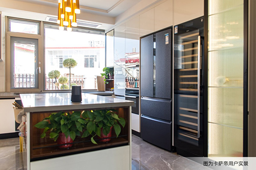 卡薩帝則率先跳出了做單品思路,自去年就開始換道場景,打通衣食住娛,為用戶提供覆蓋全場景的高端智慧生活體驗。在新一代廚房場景中,冰箱會根據一家人的身體狀況定制營養食譜,還可以聯動廚電主動烹飪,只要放入食材和佐料,便可坐等美味出爐。
